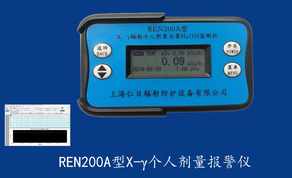 REN200A 個(gè)人輻射報(bào)警儀REN200A型X、γ輻射個(gè)人劑量當(dāng)量HP(10)監(jiān)測(cè)儀(簡(jiǎn)稱:個(gè)人劑量報(bào)警儀)內(nèi)置高靈敏度蓋格計(jì)數(shù)管為探測(cè)器,主要用來監(jiān)測(cè)各種放射性工作場(chǎng)所的X、γ以及硬β射線的輻射,具有響應(yīng)快,測(cè)量范圍寬的特點(diǎn)。能顯示工作場(chǎng)所的劑量當(dāng)量率和累積劑量,更換電池時(shí),日期及累積數(shù)據(jù)能永久保存。可選配RenRiPersonal個(gè)人劑量管理軟件,該軟件可存儲(chǔ)多個(gè)人的歷史數(shù)據(jù),能記錄日累積、月累積、年累積、輻照時(shí)長(zhǎng)、計(jì)算平均劑量率、扣除或不扣除本底輻射,且以文字和圖譜的方式展現(xiàn)數(shù)據(jù)。廣泛應(yīng)用于核電站、加速器、鋼鐵、化工、同位素應(yīng)用、工業(yè)X、γ無損探傷、放射醫(yī)療、鈷源治療、γ輻照、放射性實(shí)驗(yàn)室、核設(shè)施周圍環(huán)境監(jiān)測(cè)等領(lǐng)域中的工作人員進(jìn)行個(gè)人安全防護(hù)監(jiān)測(cè)及放射性提示。&nb